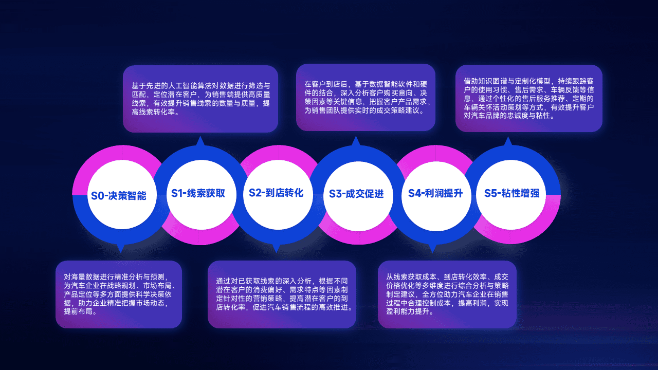 通过拓宽潜在客户来源、、、、优化线索分配并提高到店转化率,,,以增强销售效率。。同时,,利用线索数据不断优化分析模型,,有效提升转化率,,,,扩大营销影响力。。